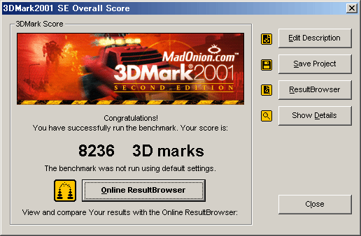 3D関係のビデオ性能でお馴染みの「3DMark2001SE」です。